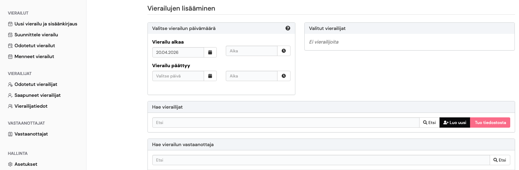 - Once visitors appear in the Selected visitors panel, save the visit.