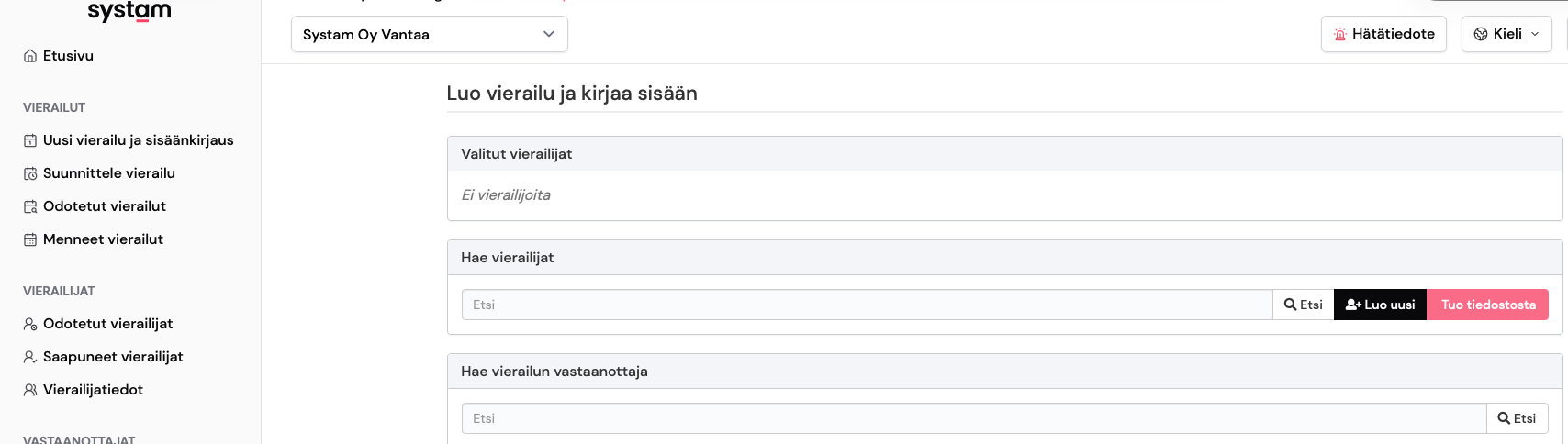 - Search for a visitor by name and click Search — or create a new visitor with Create new.