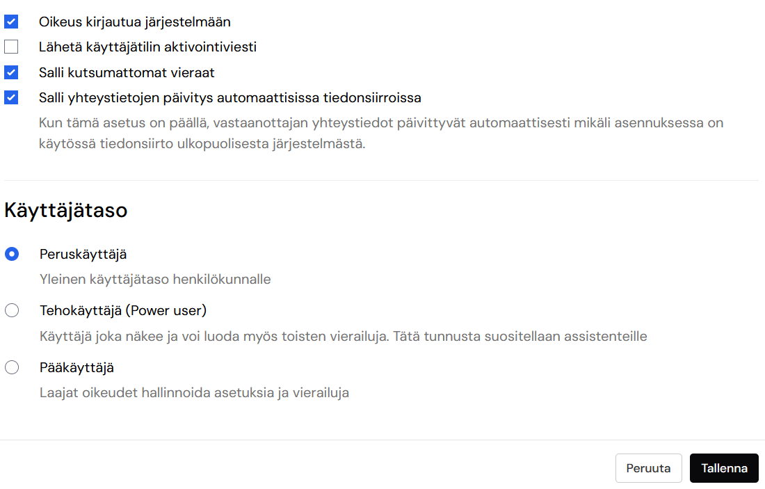 - Mikäli uusi pääkäyttäjä ei ole ollenkaan järjestelmässä, luo hänet ensiksi. (Vastaanottajan lisääminen)